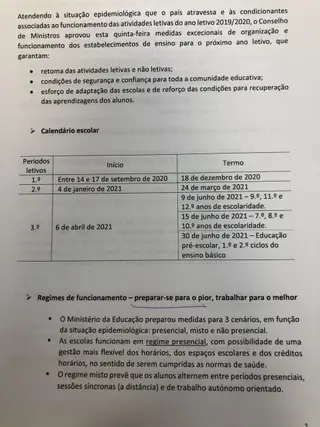 Já são conhecidas das datas do novo calendário escolar que teve de ser redefinido devido à interrupção das aulas em meados de janeiro devido ao agravamento da pandemia.
